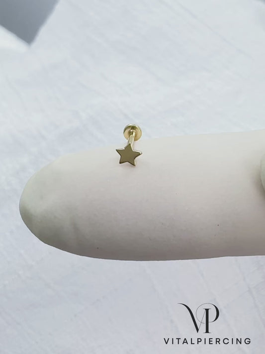 ✨ 14K Solid Yellow Gold 20G Flat Star Top Threadless Labret Stud
