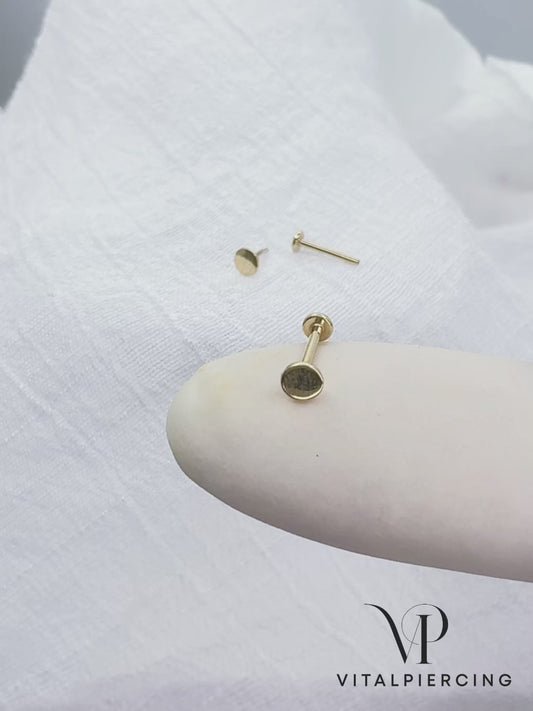 ✨ 14K Solid Yellow Gold 20G Flat Round Top Threadless Labret Stud