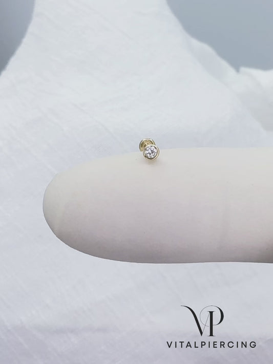 ✨ 14K Solid Yellow Gold 20G Bezel Set CZ Top Threadless Labret Stud