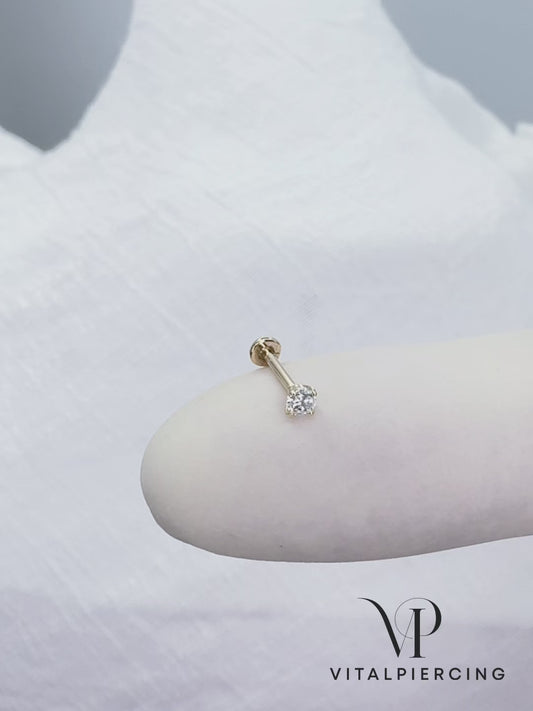 ✨ 14K Solid Yellow Gold 20G Prong Set CZ Top Threadless Labret Stud
