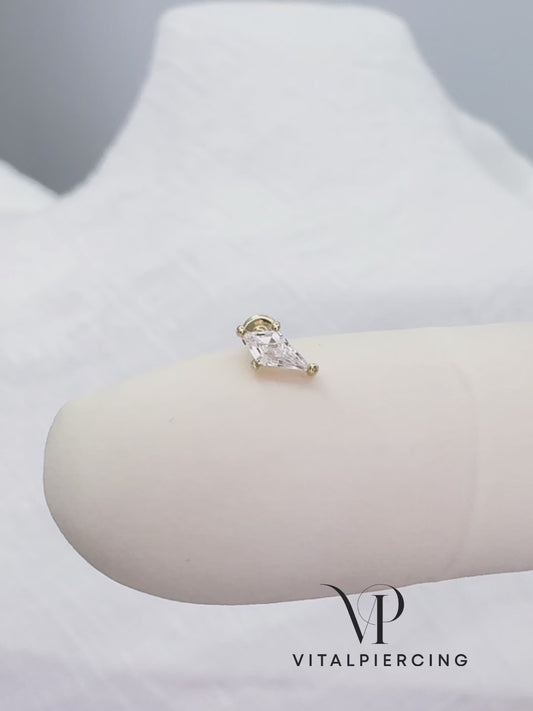 ✨ 14K Solid Yellow Gold 20G Marquise CZ Top Threadless Labret Stud