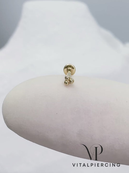✨ 14K Solid Yellow Gold 20G Triangular Ball Top Threadless Labret Stud