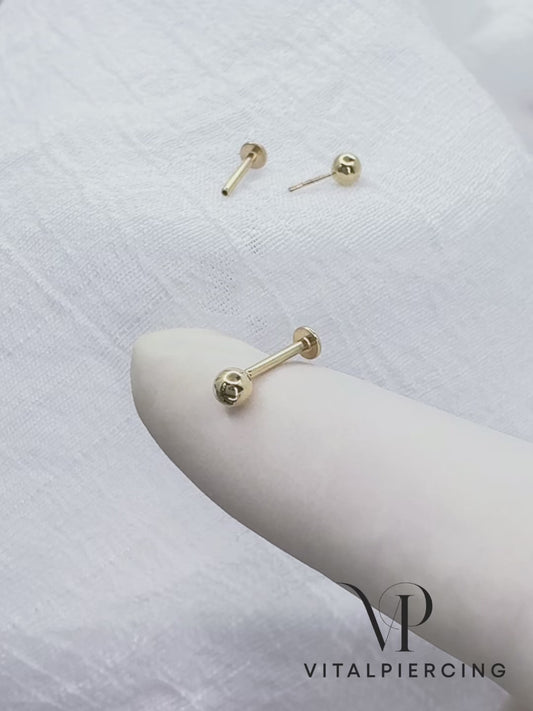 ✨ 14K Solid Yellow Gold 18G Round Ball Top Threadless Labret Stud