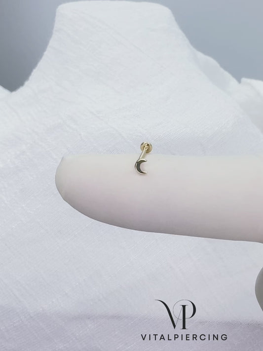 ✨ 14K Solid Yellow Gold 20G Flat Crescent Moon Top Threadless Labret Stud