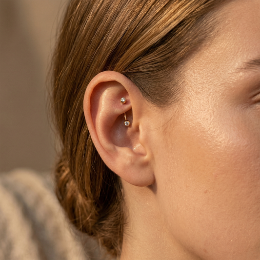24K Gold PVD Titanium CZ Pressed Fit Curved Barbell