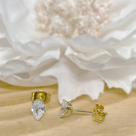 ✨ Gold Surgical Steel Teardrop CZ Stud Earrings