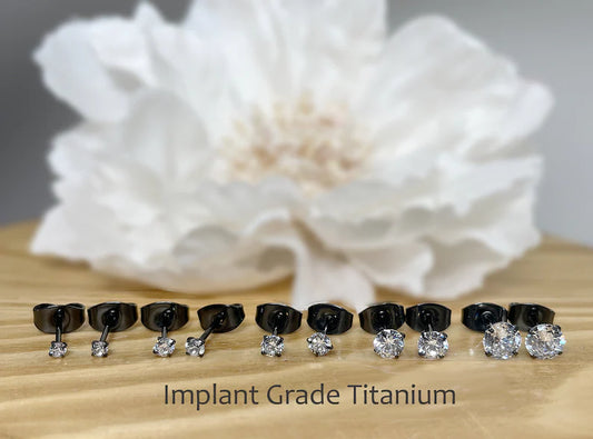 ✨ Titanium Clear Round CZ Stud Earrings