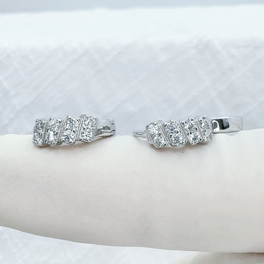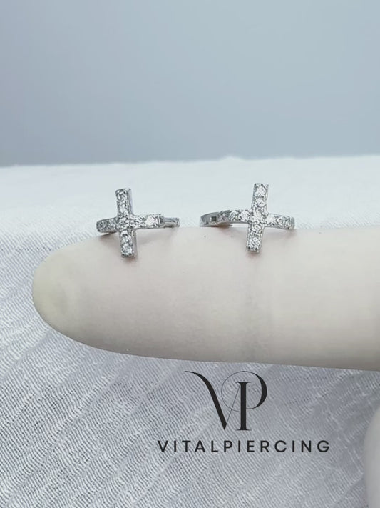 ✨ 925 Silver CZ Huggie Cross Hoop Earrings
