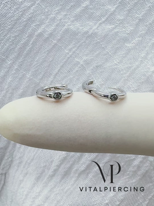 ✨ 925 Silver CZ Huggie Hoop Earrings