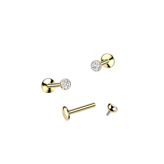 ✨ 24K Gold PVD Titanium Internally Threaded Convex Back Labret With Bezel Set CZ Top