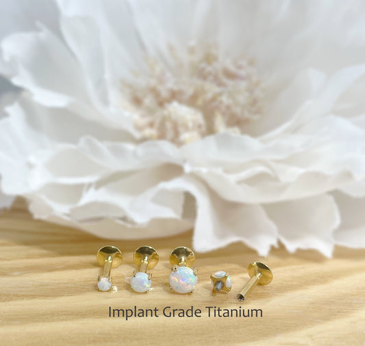 ✨ Gold PVD Titanium White Opal Internally Threaded Labret 16G