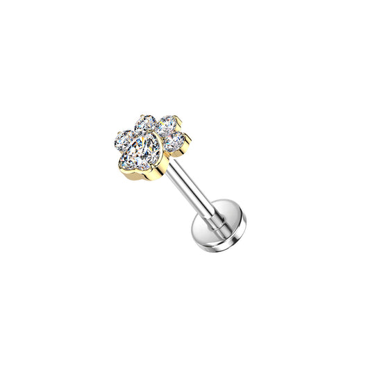 ✨ Titanium Threadless Push In CZ Paw Top Labret Bar Stud