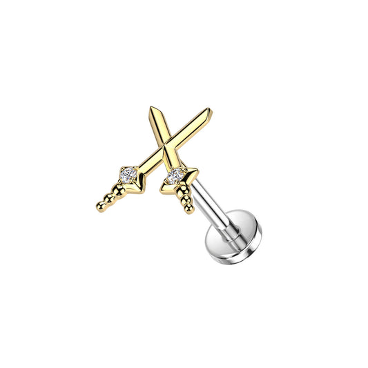 ✨ Titanium Threadless Push In Sword Dagger with CZ Top Labret Bar Stud