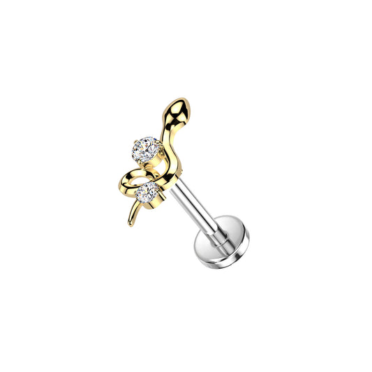 ✨ Titanium Threadless Push In Snake with CZ Top Labret Bar Stud