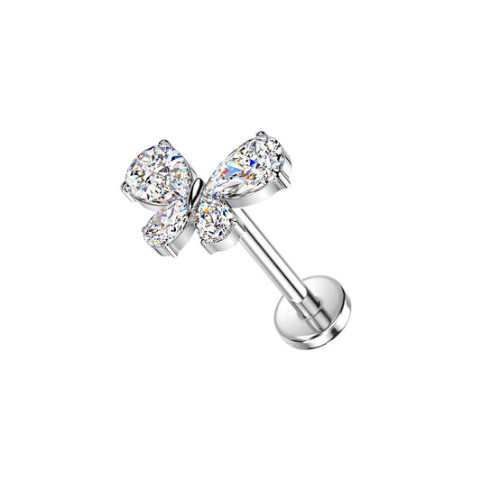 ✨ Titanium Threadless Push In CZ Butterfly Top Labret Bar Stud