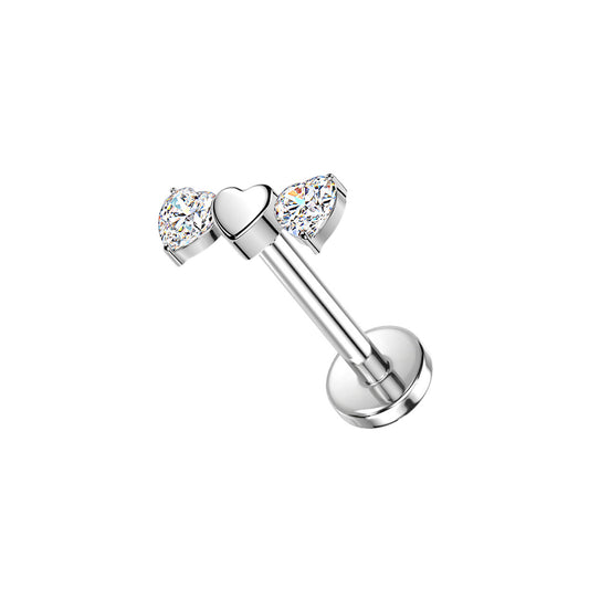 ✨ Titanium Threadless Push In CZ Triple Heart Top Labret Bar Stud