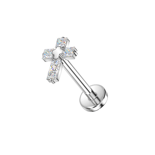 ✨ Titanium Threadless Push In CZ Cross Top Labret Bar Stud