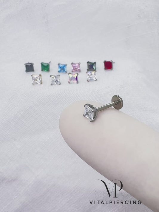 ✨ Titanium Prong-Setting Square Aqua CZ Top Threadless Labret