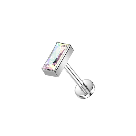 ✨ Titanium Rectangular CZ Top Threadless Labret Bar Stud