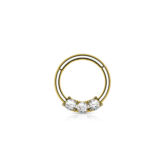 ✨ 16G 8mm Surgical Steel 3-CZ Hinged Clicker Hoop