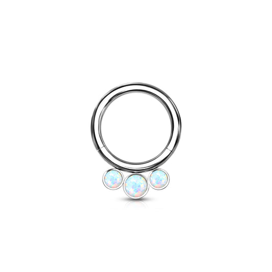 ✨ Titanium 3-Bezel Set CZ Hinged Clicker Hoop 16G