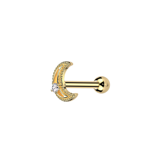 ✨ Surgical Steel Crescent Moon CZ Threaded Flat Back Labret 16G