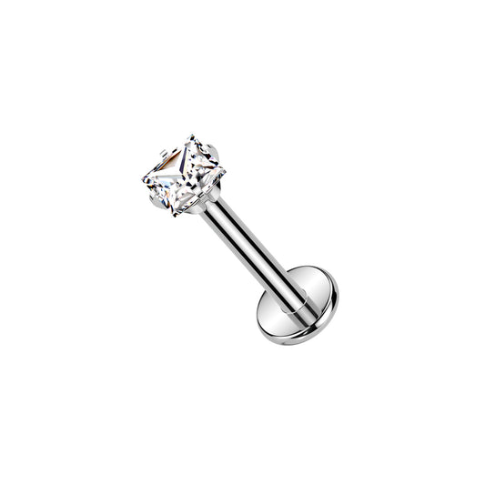 ✨ 16G Implant Grade Titanium Internally Threaded Labret with Square Prong Set CZ Top