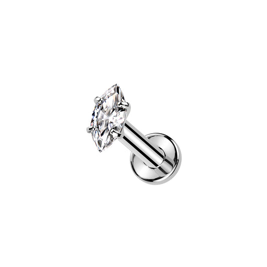 ✨ Titanium Marquise CZ Internally Threaded Flat Back Labret 16G
