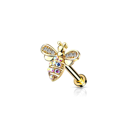 ✨ Titanium Bee Top with Internally Threaded Labret Bar 16G