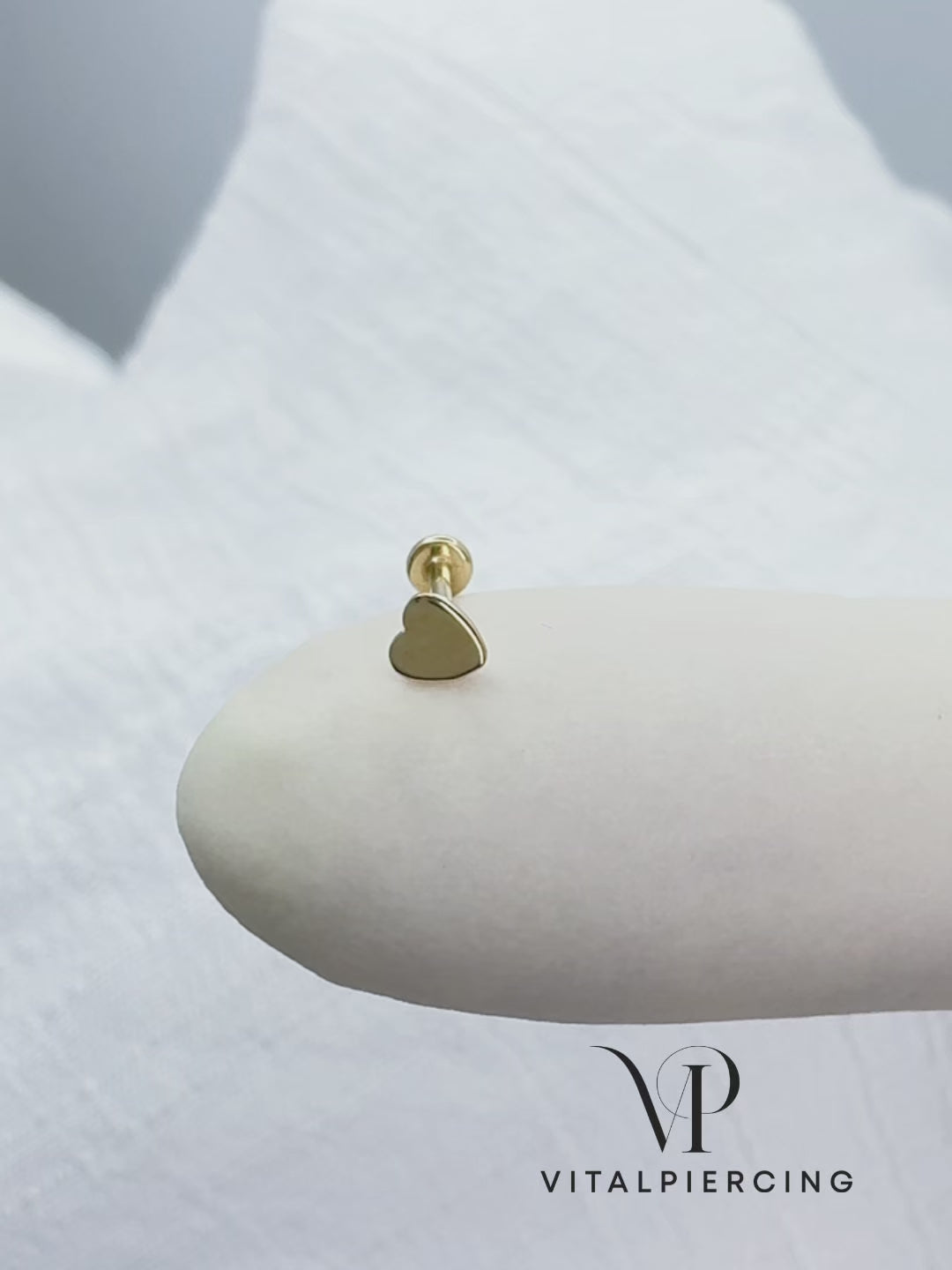 ✨ 14K Solid Yellow Gold 20G Flat Heart Top Threadless Labret Stud