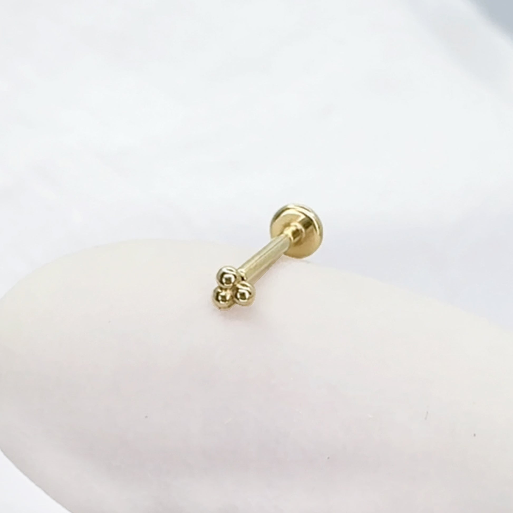 ✨ 14K Solid Yellow Gold 20G Triangular Ball Top Threadless Labret Stud