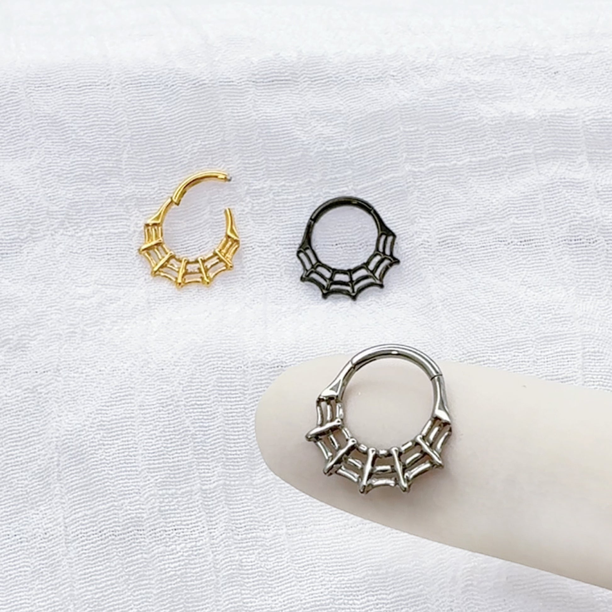 ✨ 16G Titanium Spider Web Hinged Segment Ring