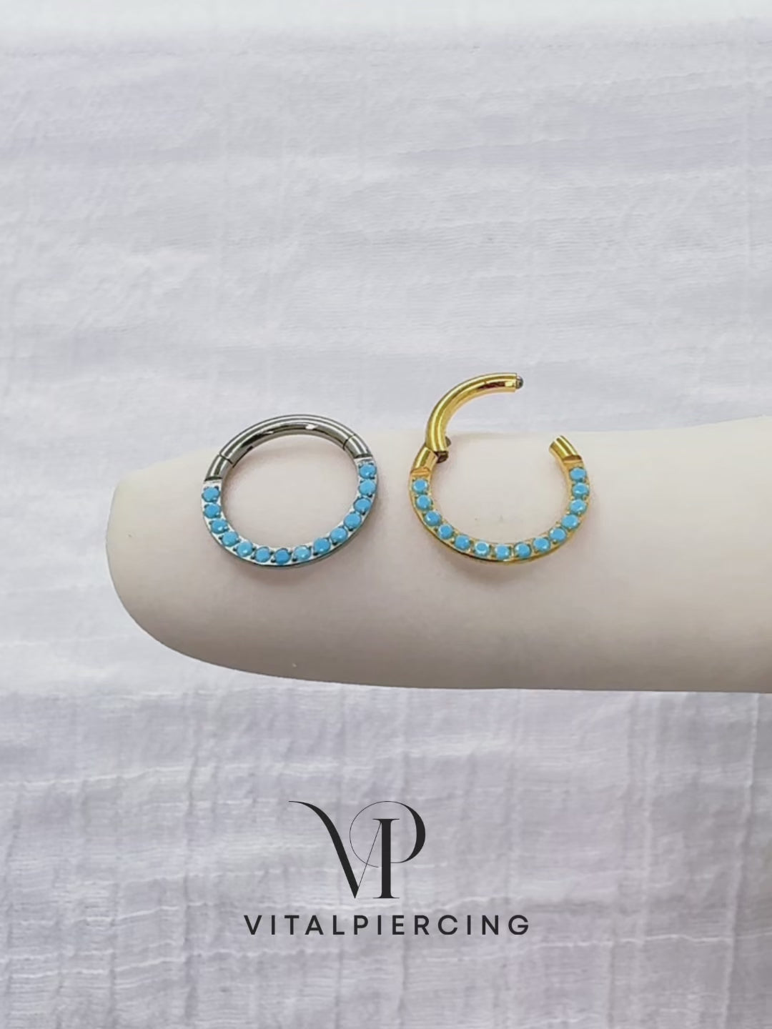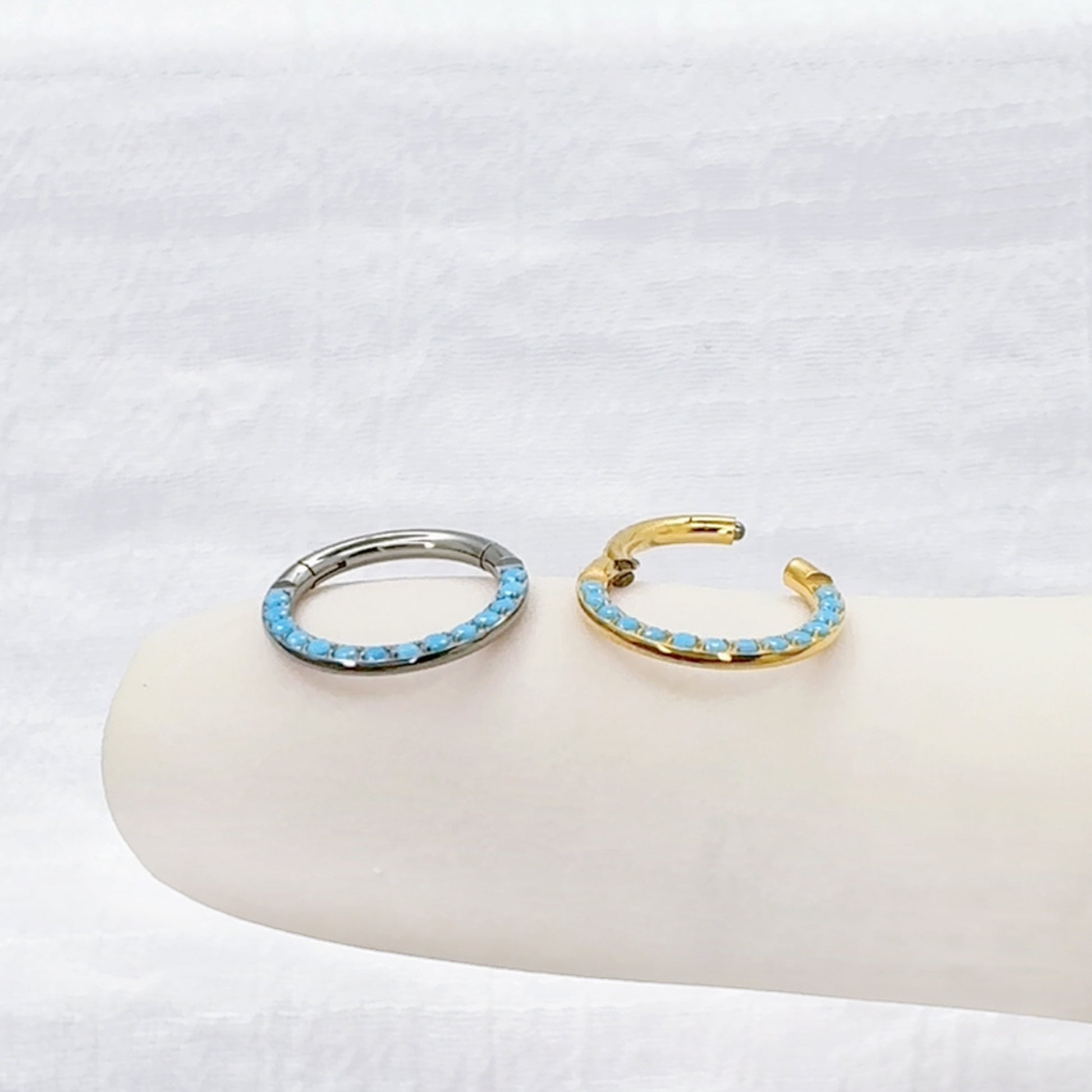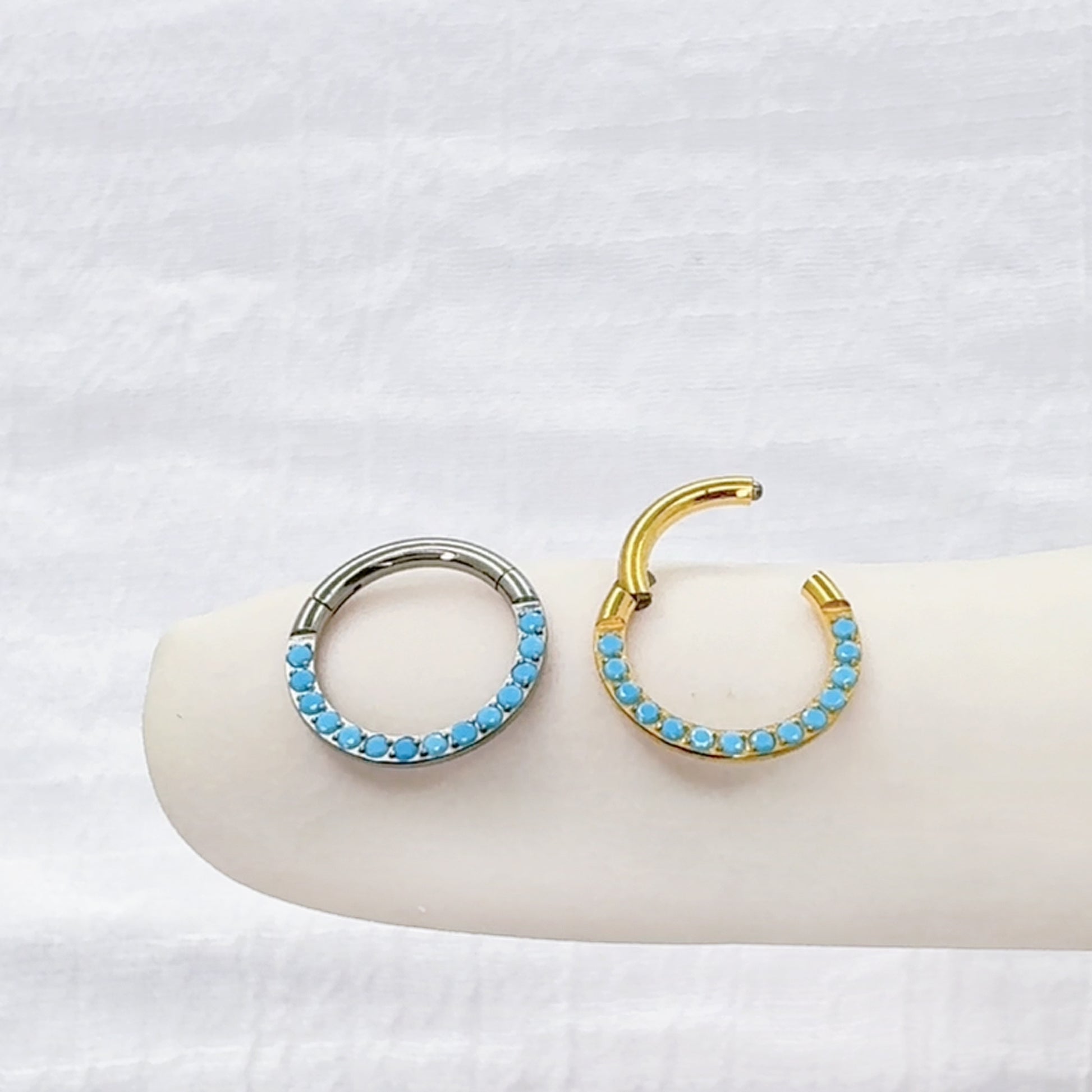 ✨ 16G Titanium Hinged Segment Hoop Ring with Turquoise Front