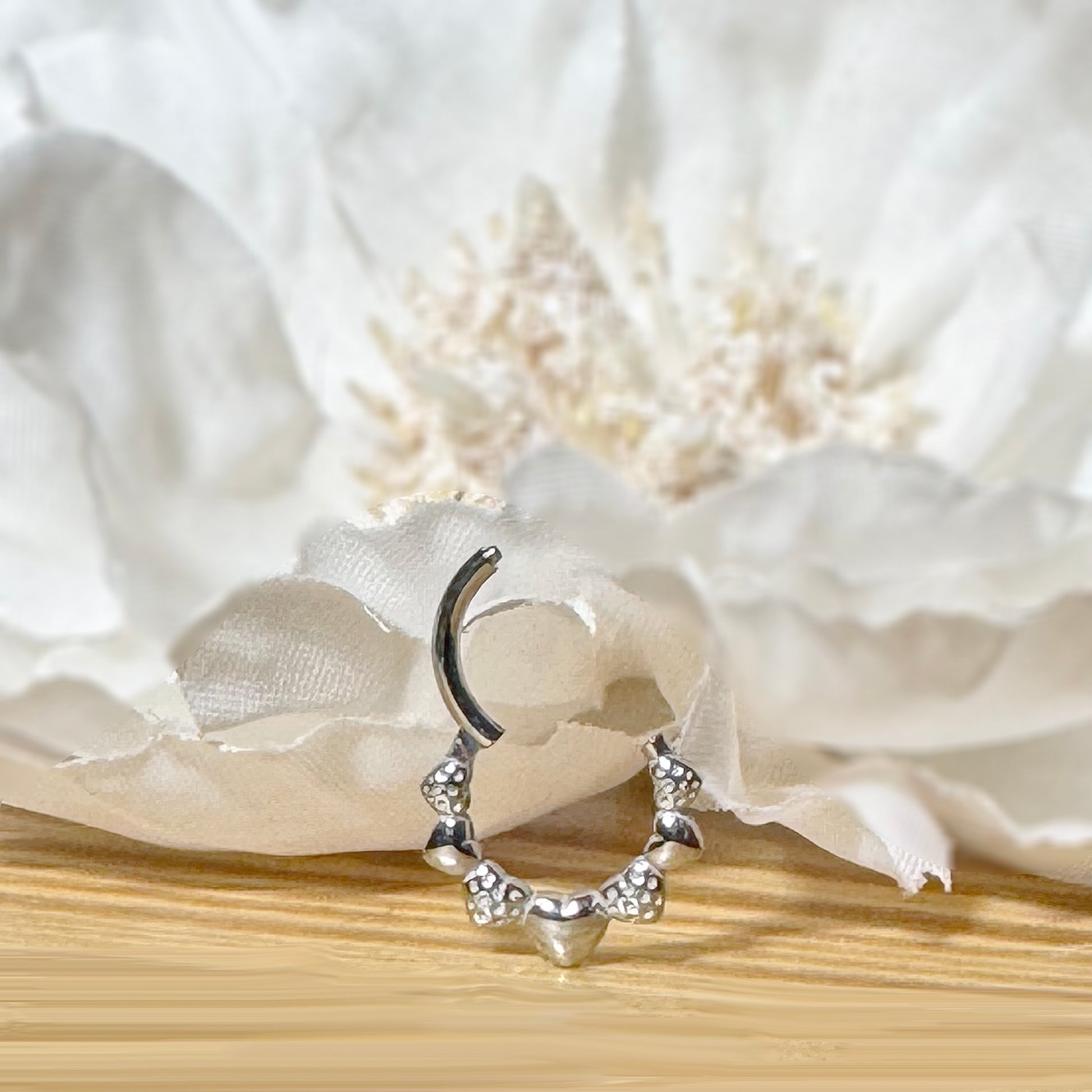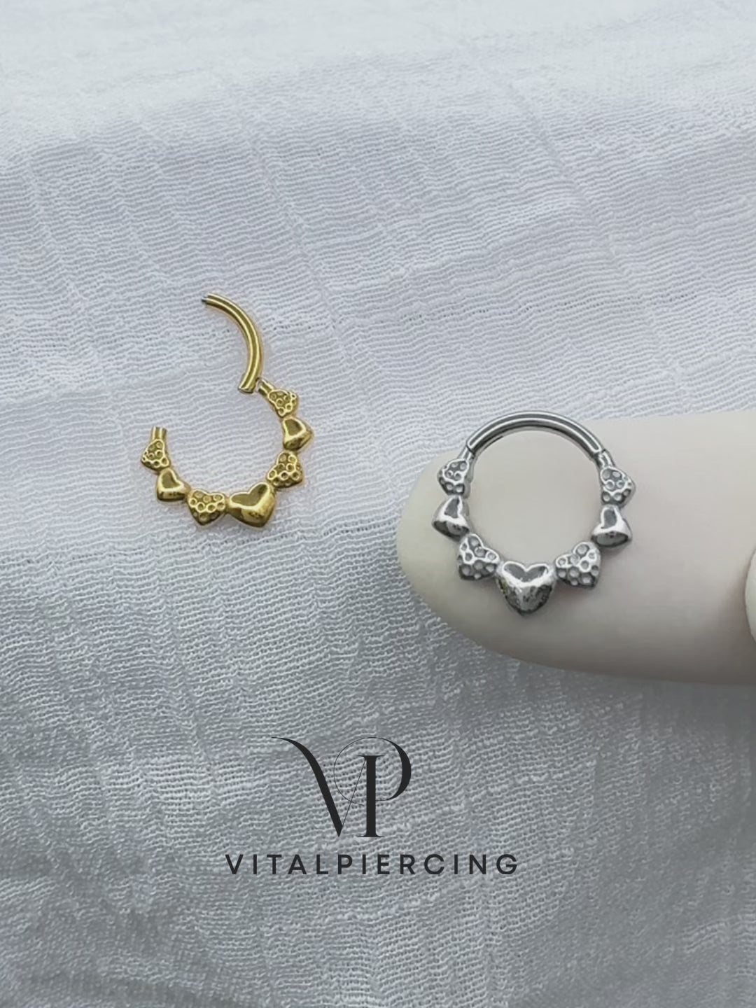 ✨ 316L Surgical Steel Hearts Hinged Segment Hoop Clicker Ring 16G 8mm