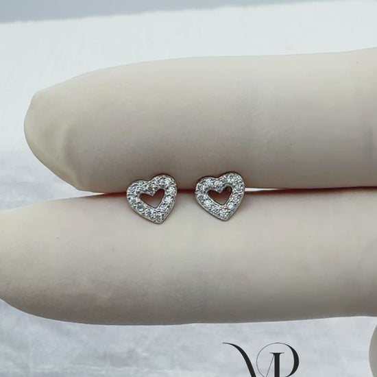 ✨ 925 Silver CZ Heart Stud Earrings