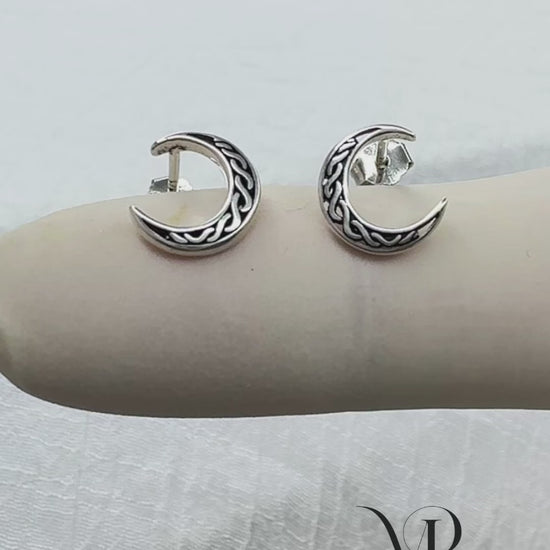 ✨ 925 Silver Celtic Moon Stud Earrings