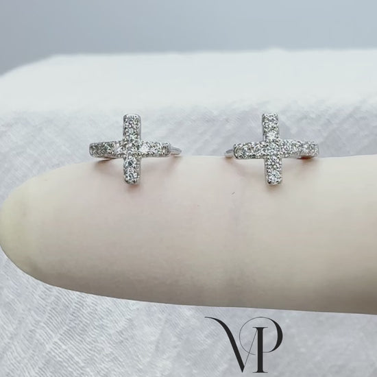 ✨ 925 Silver CZ Huggie Cross Hoop Earrings