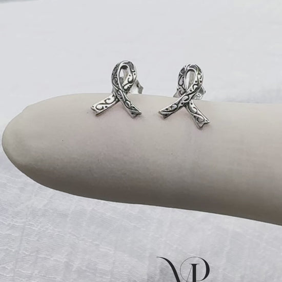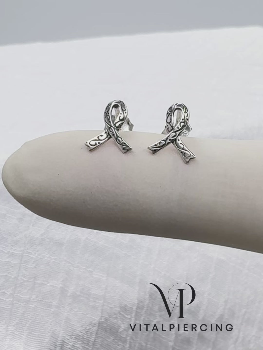 ✨ 925 Silver Breast Cancer Sign Stud Earrings