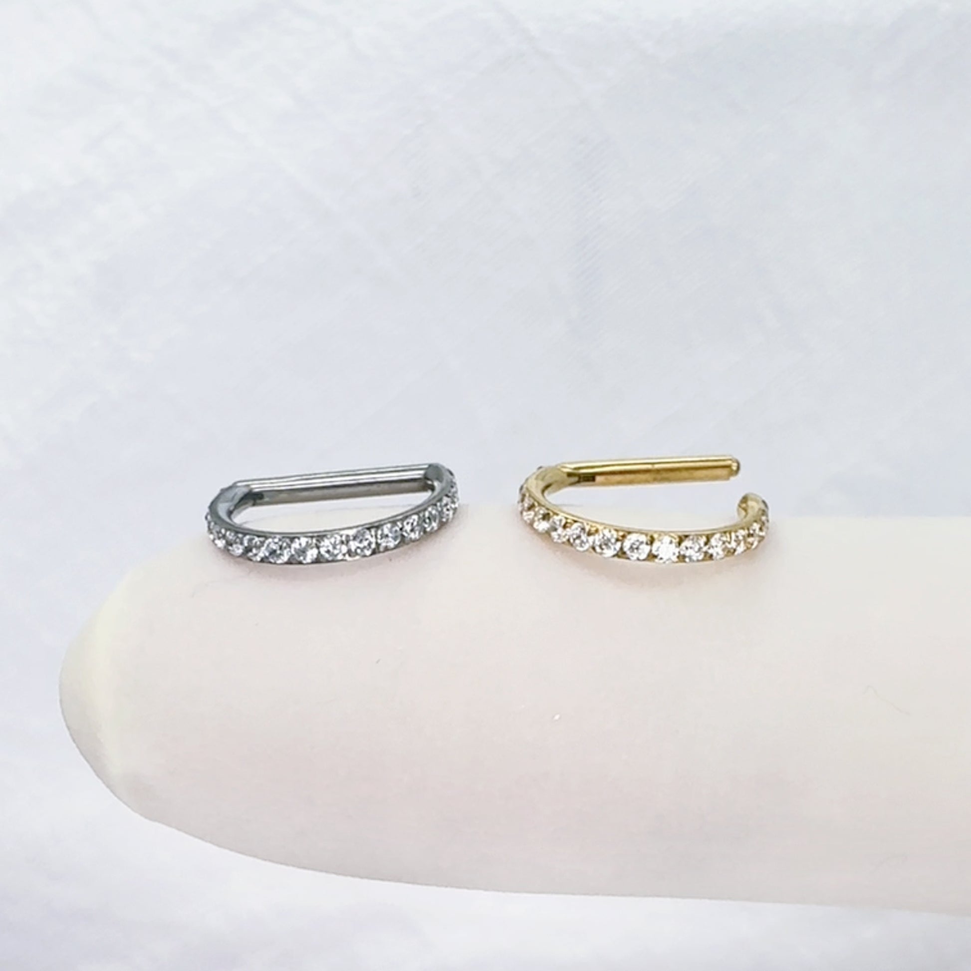 ✨ Titanium D-Shaped Hinged Hoop with CZ Outside