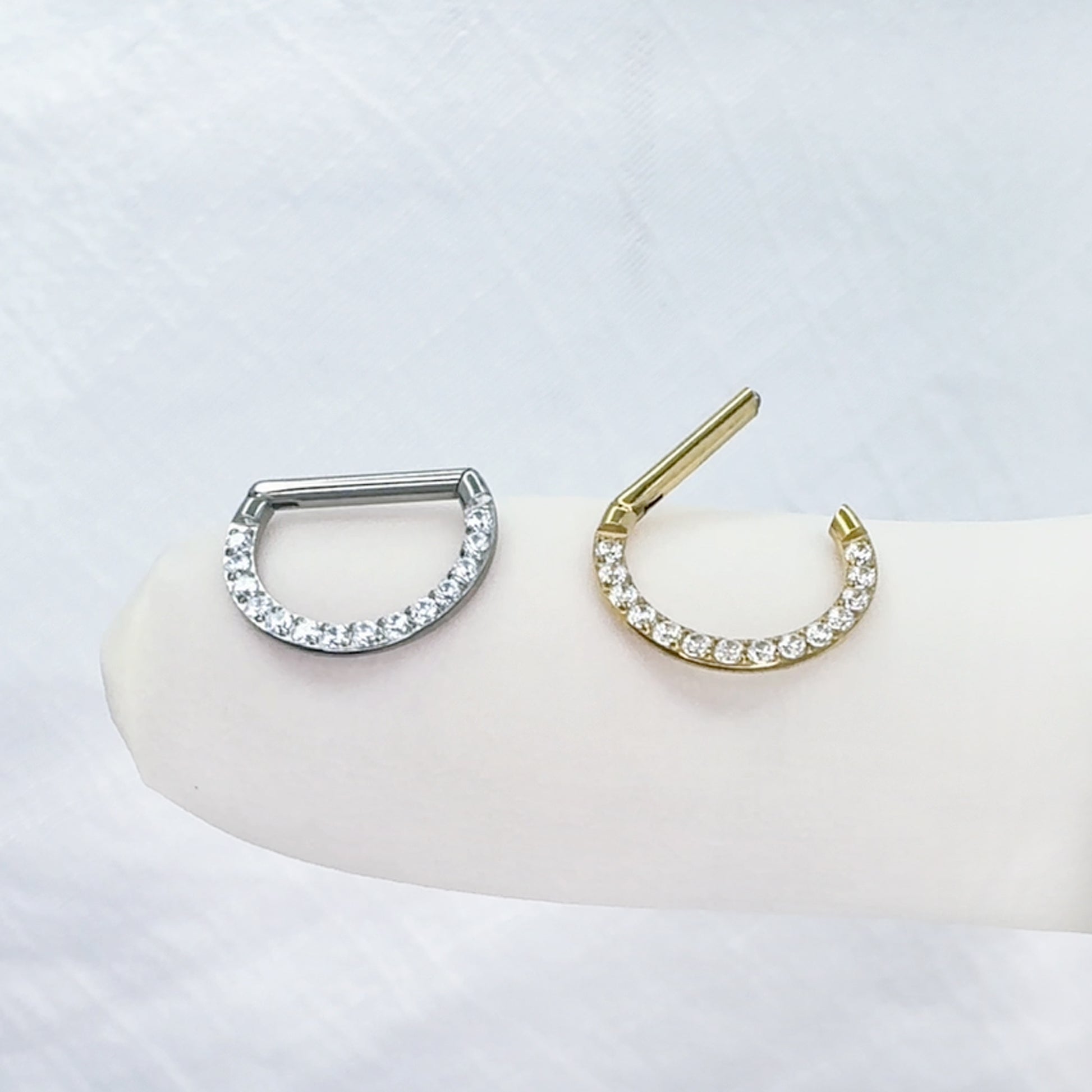 ✨ Titanium D-Shaped Hinged Segment Hoop with Front CZ 16G