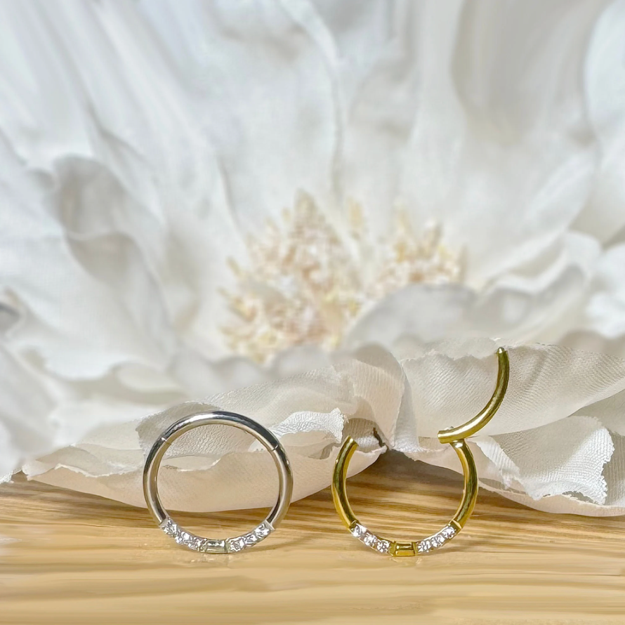 ✨ Hinged Segment Hoop with CZ In Front 16G