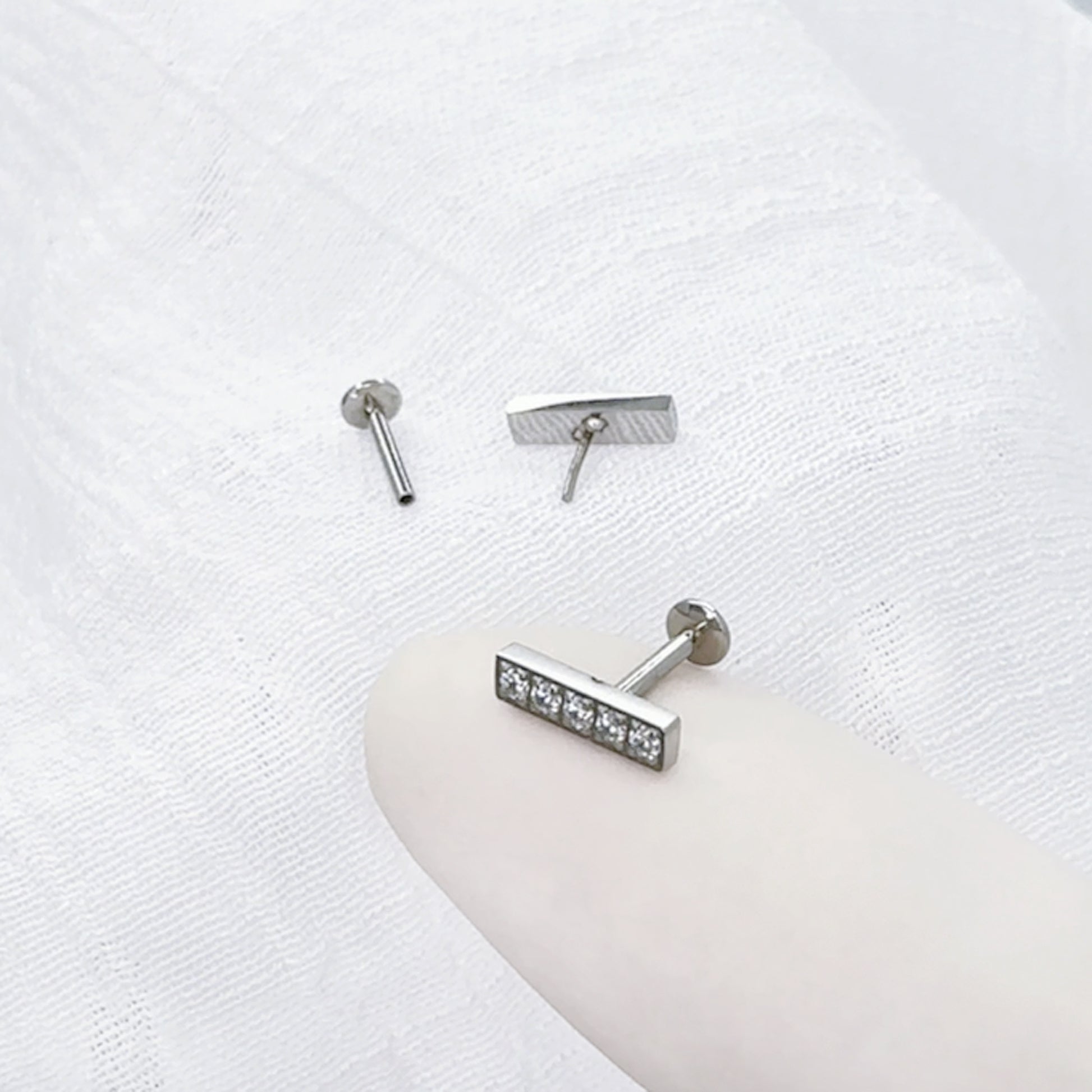✨ Surgical Steel Threadless Push In Labret with CZ Bar Top