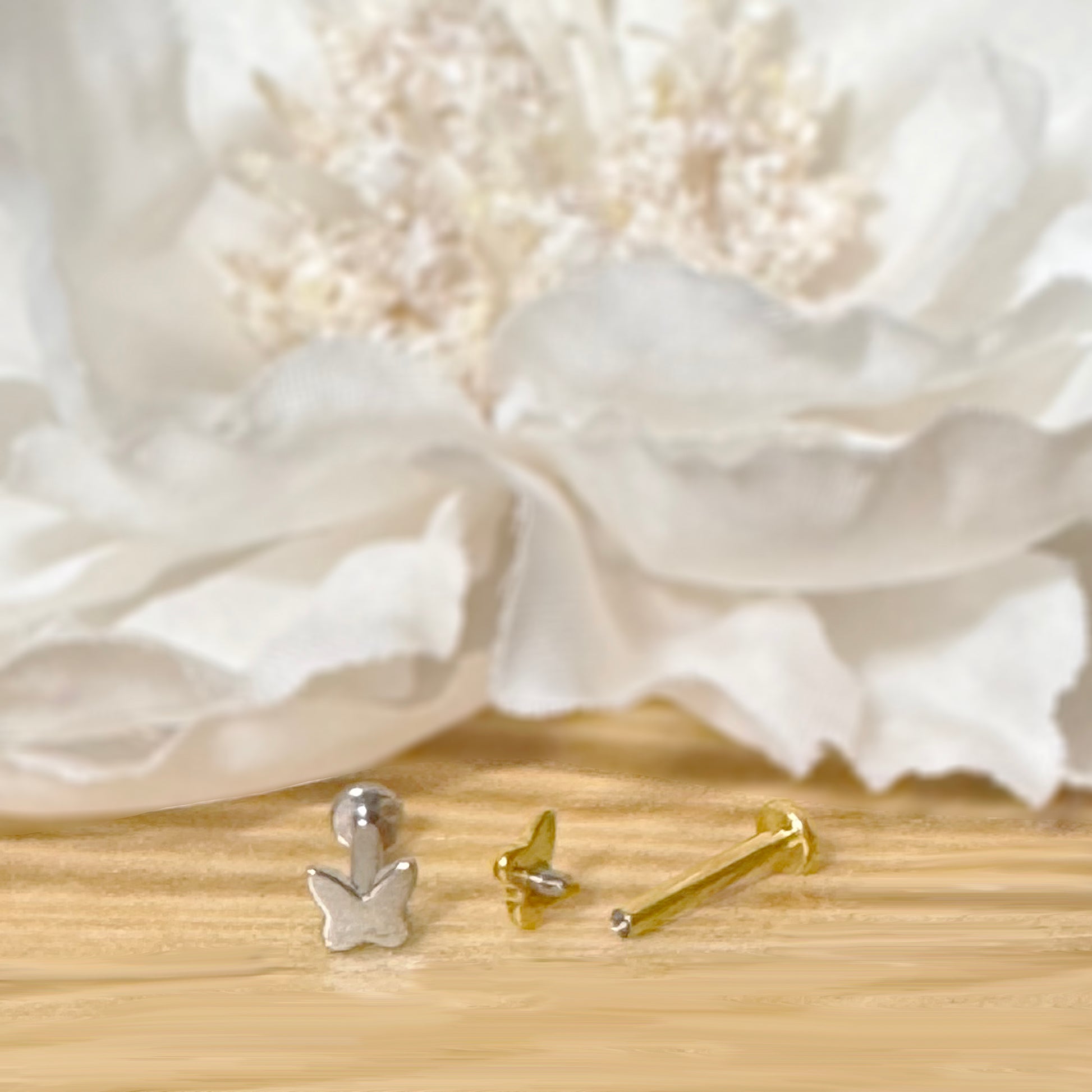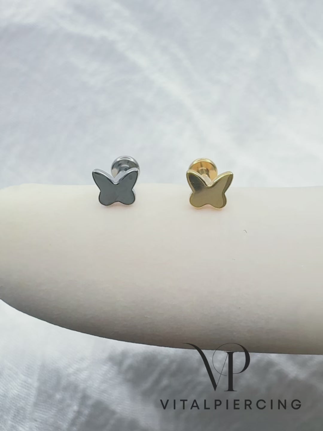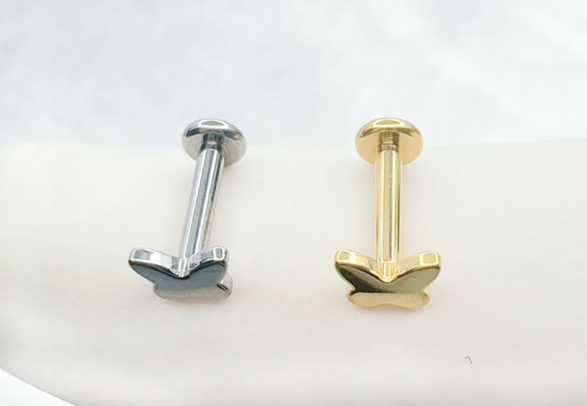 ✨ Titanium 16G Butterfly Top with Internally Threaded Labret Bar