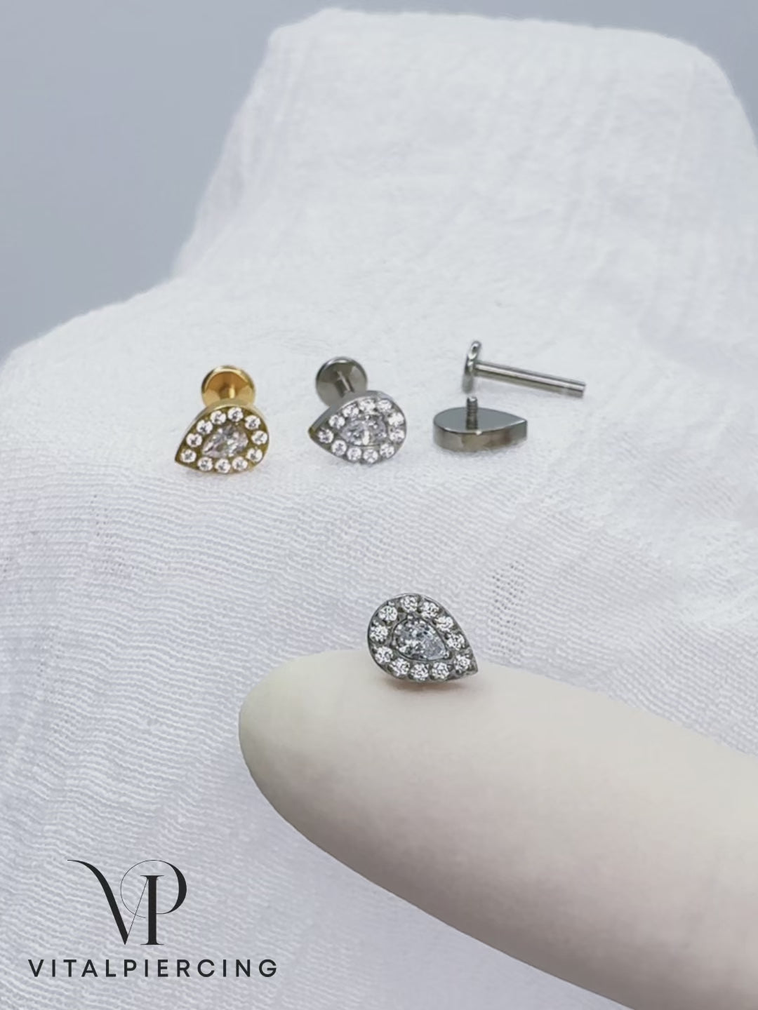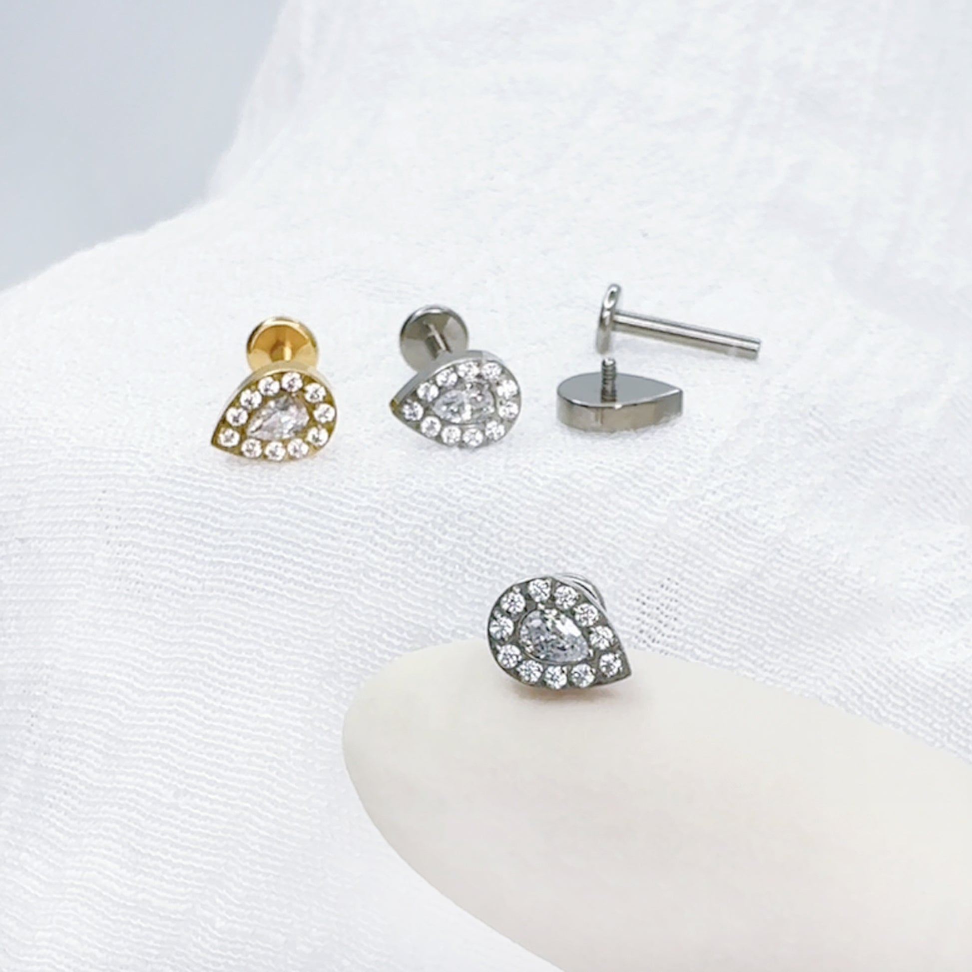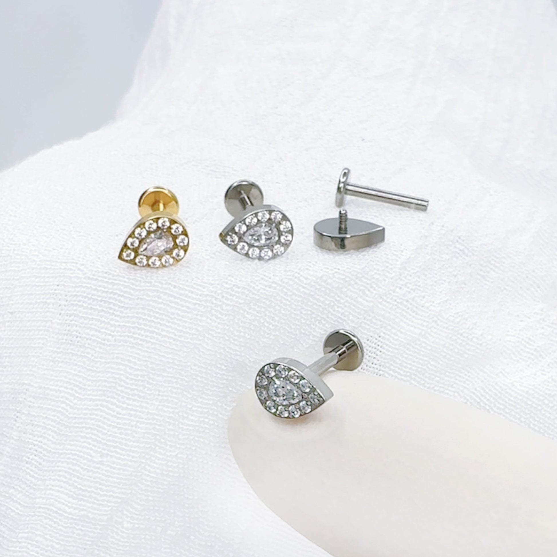 ✨ Titanium Teardrop CZ Top Internally Threaded Labret 16G