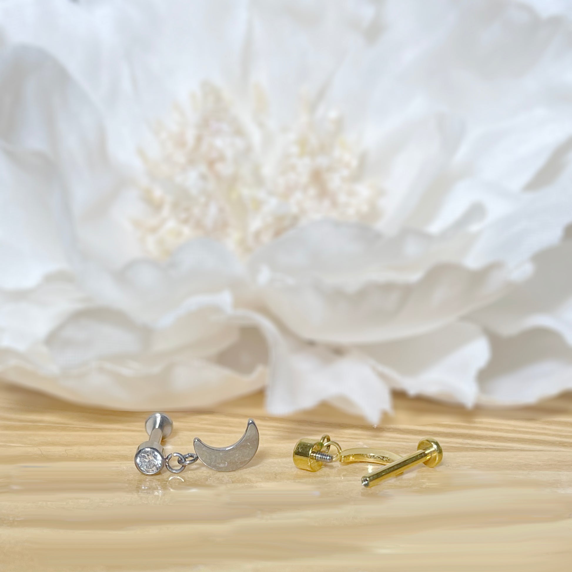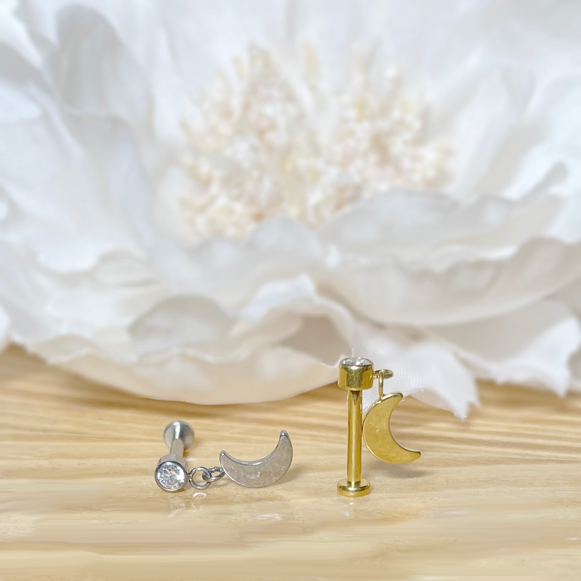 ✨ Titanium Crescent Moon CZ Dangle Top Internally Threaded Labret 16G