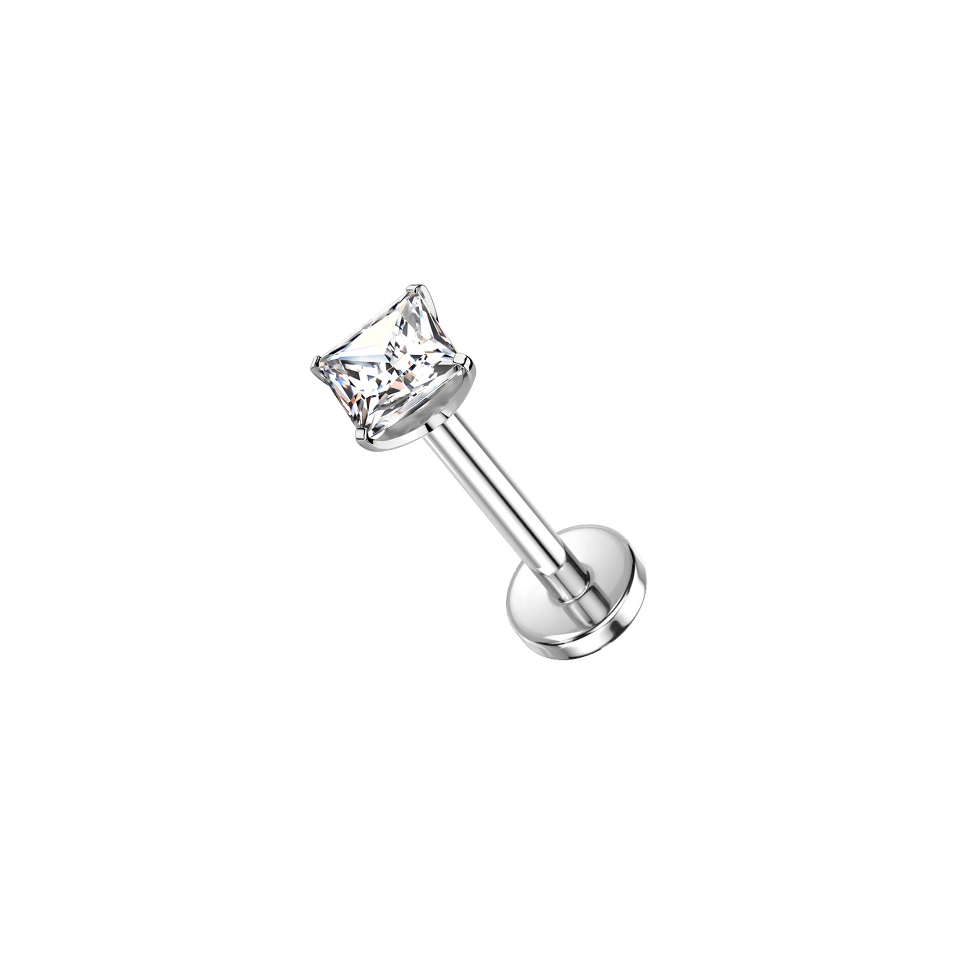 ✨ Titanium Prong-Setting Square CZ Top Threadless Labret