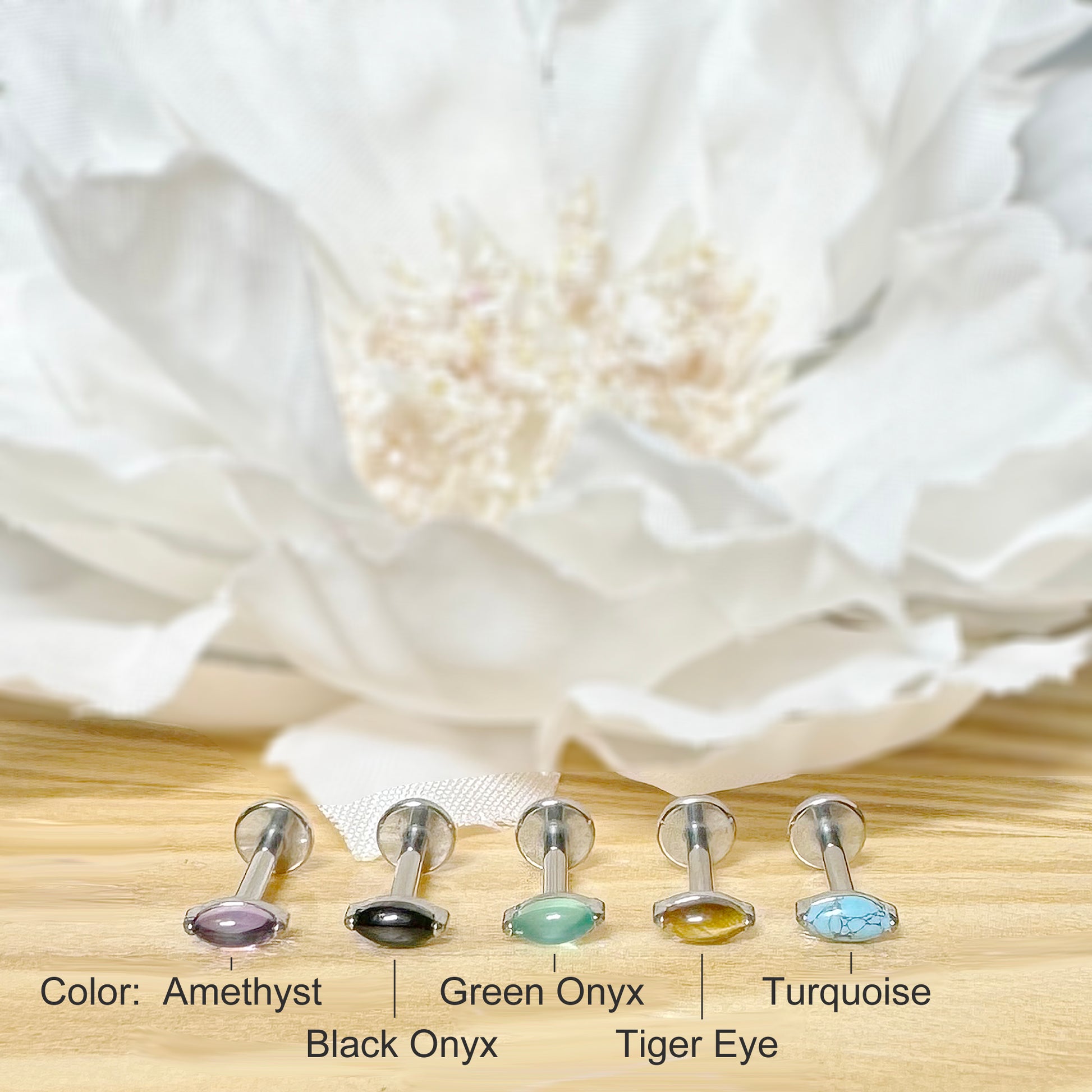 ✨ Titanium Marquise Natural Stone Top Threadless Labret