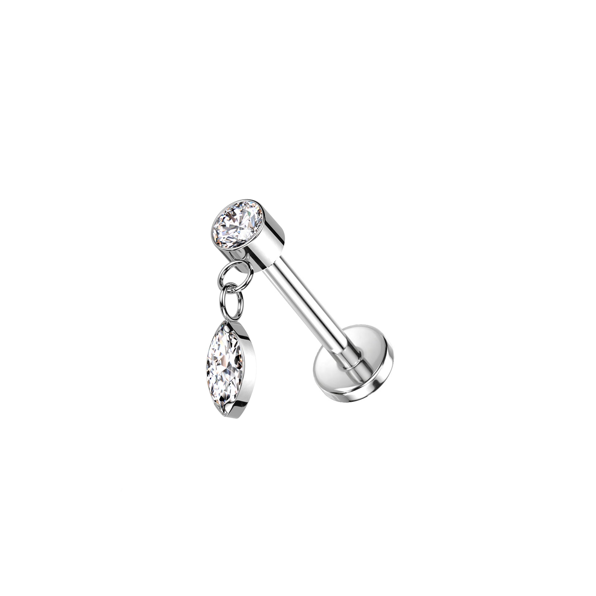 ✨ Titanium Marquise CZ Dangle Top Threadless Labret Bar Stud