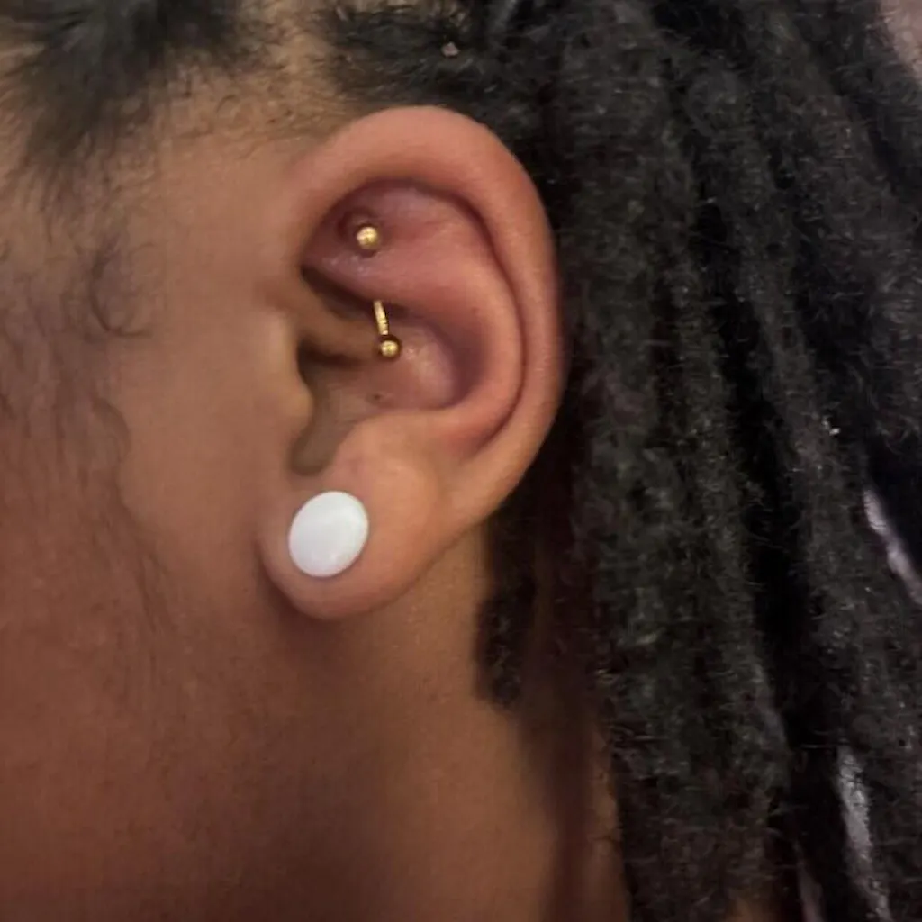 I love theses, it’s so much better and easier to put in than the screw ones. Thank you! Excuse the bump on my piercing :(