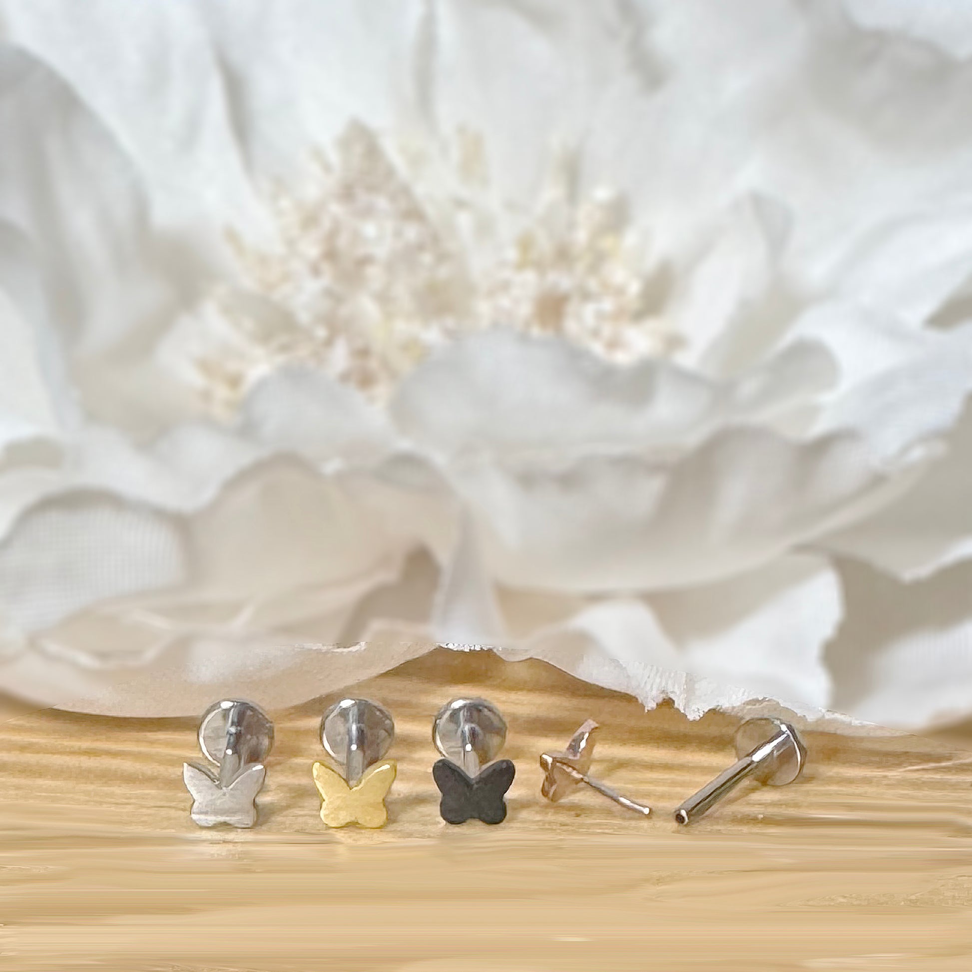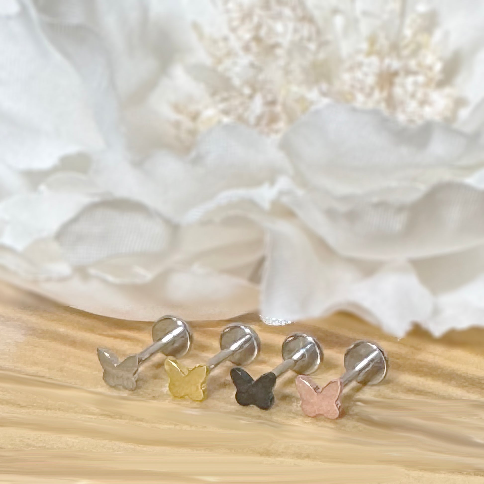 ✨ Titanium Threadless Push In Butterfly Top Labret Bar Stud